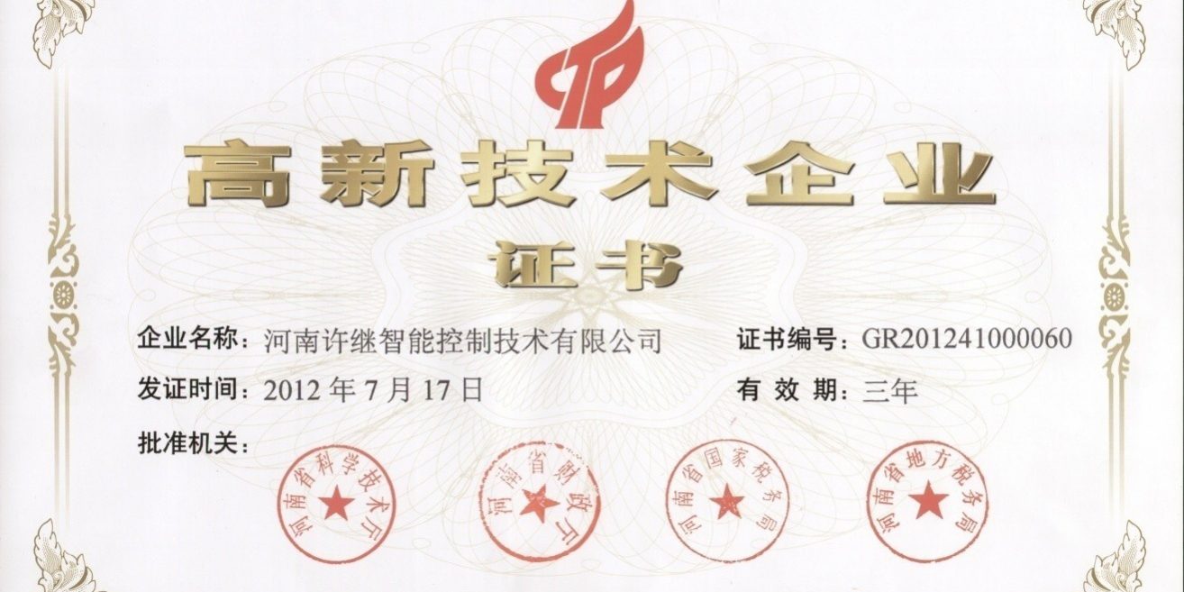 新年伊始,河南許繼智能控制技術有限公司又傳喜訊。我司獲得由省科學技術廳、財政廳、國稅局、地稅局實施評定的2012年“高新技術企業(yè)”榮譽稱號。為公司加快發(fā)展創(chuàng)造了條件。