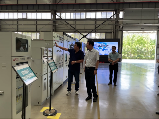 閆萬鵬總經(jīng)理一行在公司董事長的陪同下先后參觀了公司展廳、保護(hù)自動(dòng)化生產(chǎn)車間、能源互聯(lián)網(wǎng)產(chǎn)業(yè)園智能裝配車間、光儲(chǔ)充一體化示范項(xiàng)目。