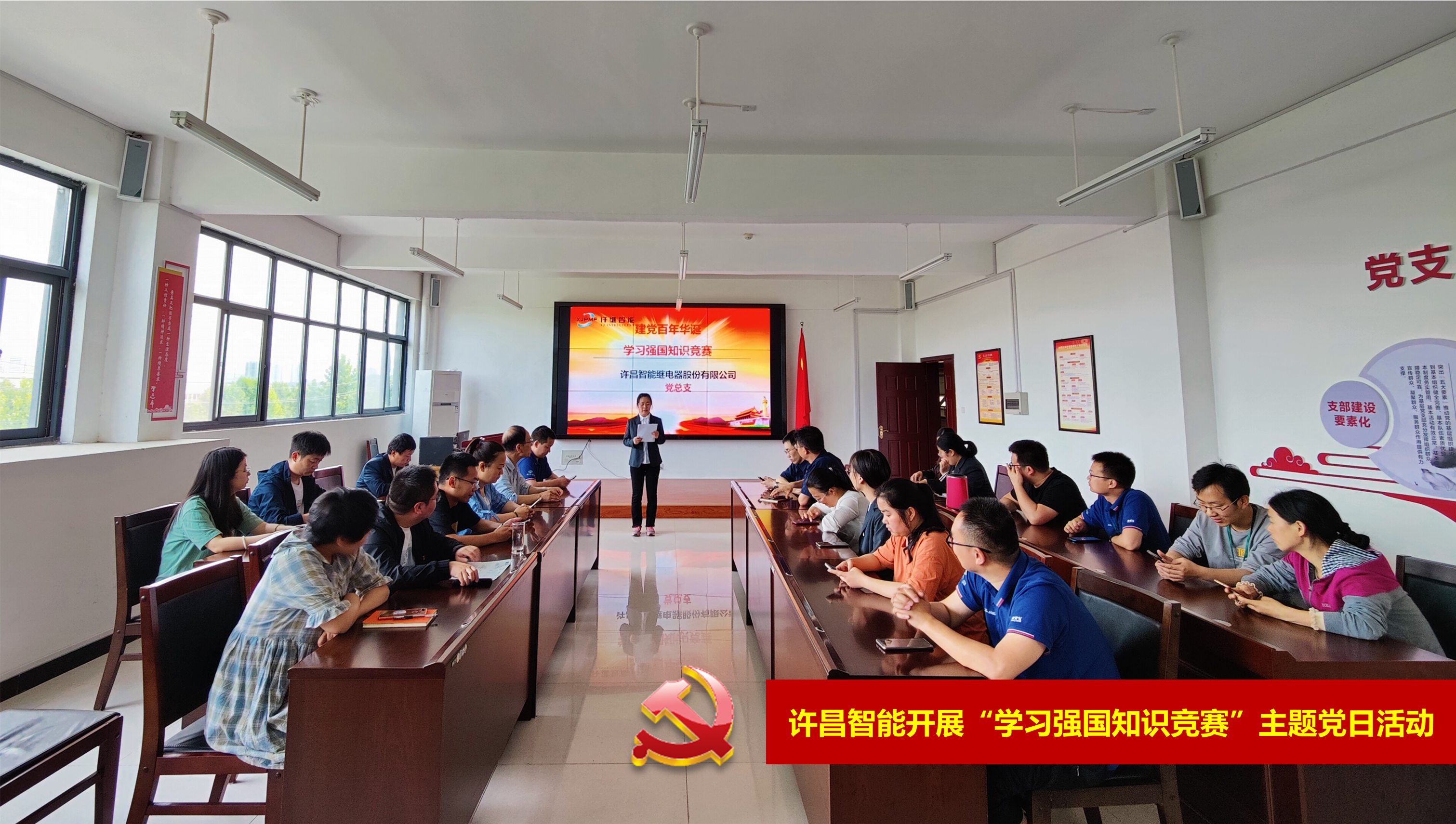 為創(chuàng)新和豐富黨組織生活方式,加強黨組織的凝聚力、戰(zhàn)斗力,激發(fā)黨員干部學(xué)習(xí)的積極性、主動性,5月20日,中共許昌智能黨總支在公司三樓黨員學(xué)習(xí)中心開展了“學(xué)習(xí)強國知識競賽”主題黨日活動。