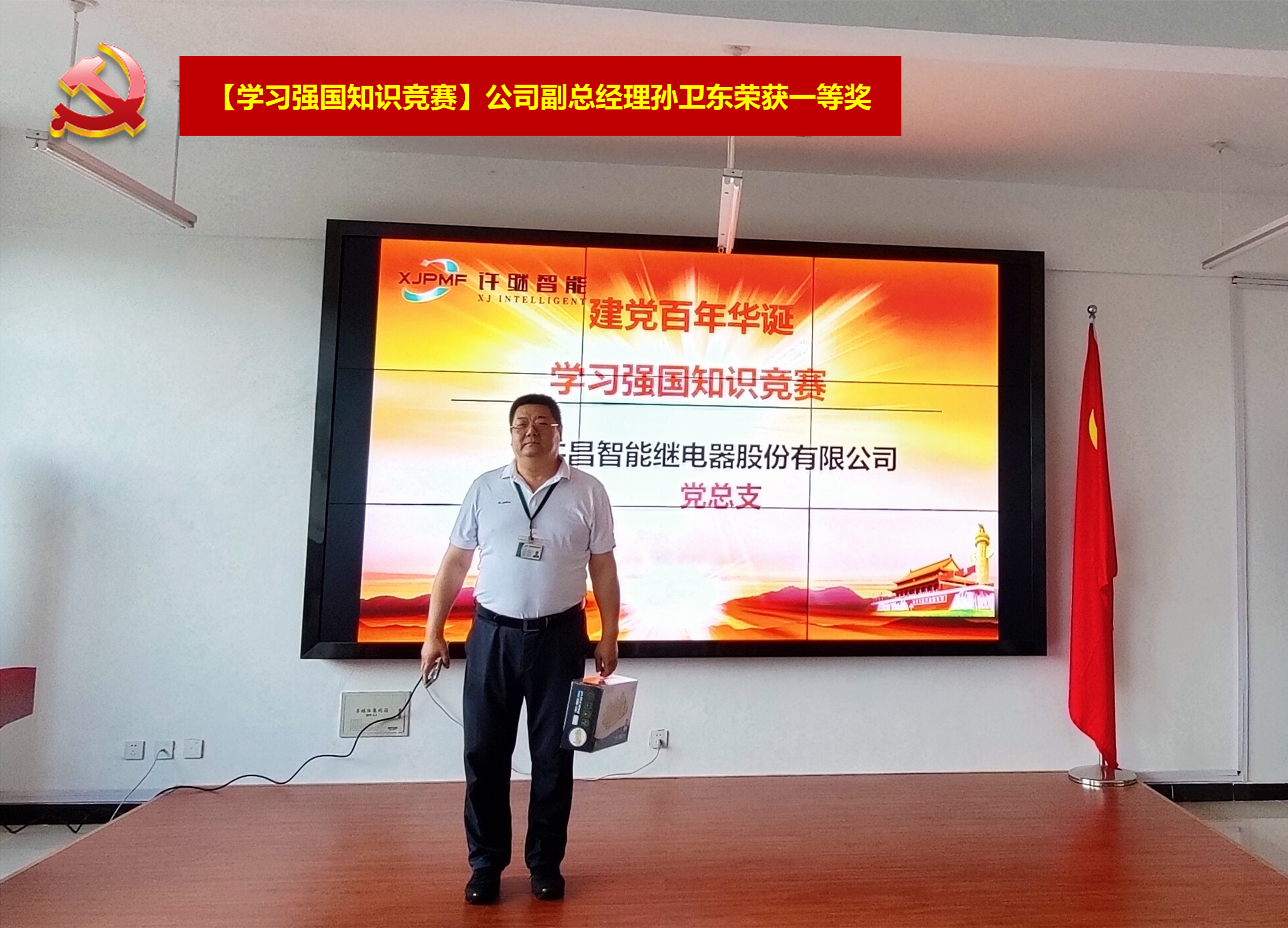 競賽現(xiàn)場緊張激烈,比賽過程精彩絕倫。各位選手精神飽滿,沉著冷靜,充分調(diào)動知識儲備,一一擊破各類題目,展現(xiàn)出了一名黨員應(yīng)有的理論深度和知識廣度。最終經(jīng)過多輪角逐,公司副總經(jīng)理、公司黨支部“學(xué)習(xí)強國”平臺積分排名第一的孫衛(wèi)東同志憑借其廣泛的知識儲備和扎實的理論功底斬獲本次“學(xué)習(xí)強國知識競賽”第一名的桂冠。競賽結(jié)束后,獲獎選手依次上臺領(lǐng)獎。