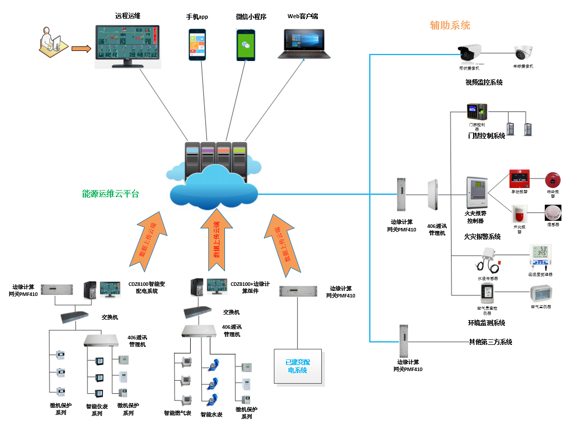 ECLOUD-8000能源運維云平臺基于目前最新的物聯(lián)網(wǎng)云平臺技術(shù)進行設(shè)計,整體上采用了端、邊、云、用的架構(gòu)模式;可以實現(xiàn)底層變配電系統(tǒng)的無縫接入,支持二次開發(fā),可實現(xiàn)視頻、環(huán)境等輔助監(jiān)控系統(tǒng)數(shù)據(jù)接入。云平臺同時支持公有云和私有云部署。
