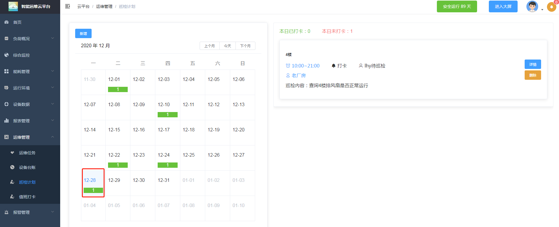 通過系統(tǒng)編制巡檢計劃和內(nèi)容,并將計劃下發(fā)到巡檢人員手機上,巡檢人員在變電所現(xiàn)場根據(jù)巡檢要求執(zhí)行巡檢任務(wù),并在系統(tǒng)中記錄巡檢情況,管理人員可以點擊詳情查看巡檢結(jié)果。