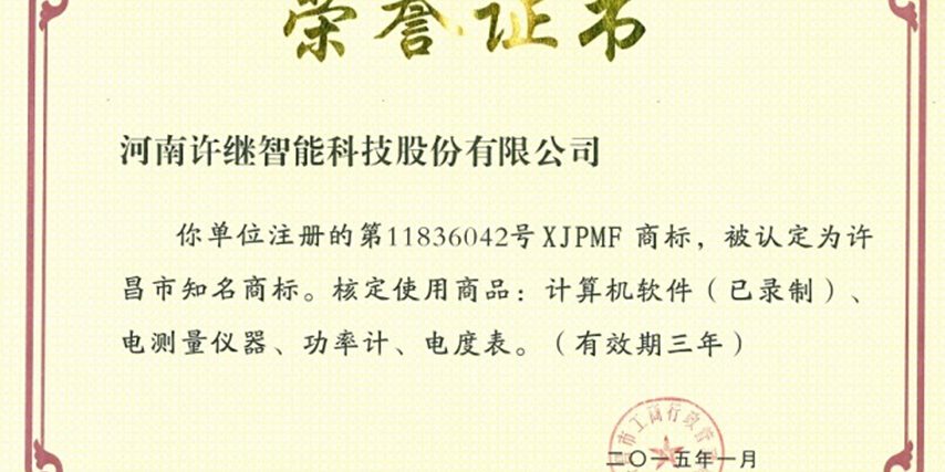 日前,我公司“XJPMF”商標(biāo)被許昌市工商局認(rèn)定為許昌市知名商標(biāo)。