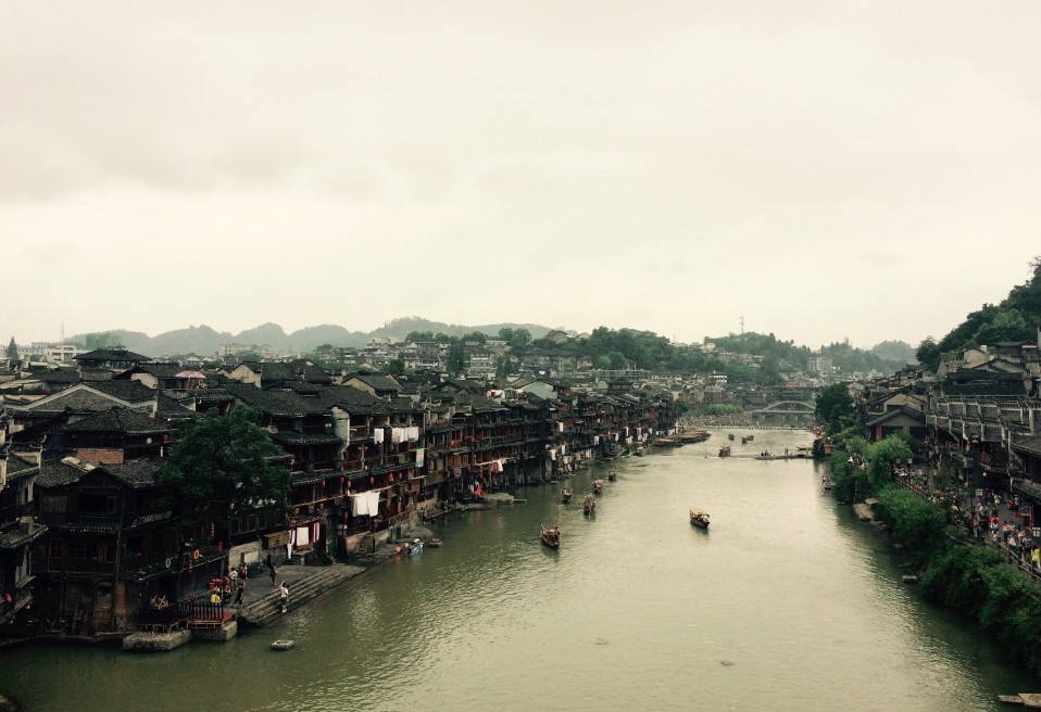 煙迷水鄉(xiāng)景朦朧,雨霏絲絲育花紅;鳳鳴晨曦蘭舟影,凰鸞曲婉古樓中。鳳凰古城因沈從文的《邊城》一書而漸為人知,依然記得高中語文課本節(jié)選描繪道:“隨意割切一段勾勒紙上,就可成一絕好宋人畫本”。而今,置身于此,細(xì)細(xì)領(lǐng)略這座千年古城的詩情畫意:她風(fēng)景秀麗、歷史悠久、生活安逸,城外沱江蜿蜒、漿聲舟影,城內(nèi)人來人往、各自為生。晚上燈紅酒綠,同事三五成群,流連于各色小店;清晨寧靜優(yōu)雅,安逸閑適,大家結(jié)伴參訪故居名勝。