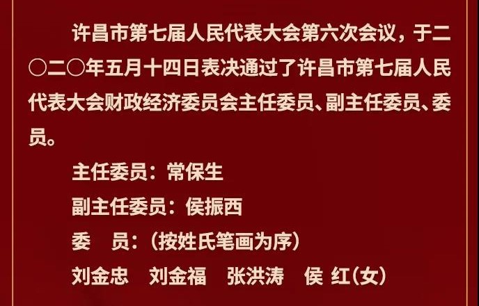 會(huì)議期間,公司董事長(zhǎng)張洪濤作為許昌市第七屆人大代表出席了會(huì)議,以飽滿(mǎn)的政治熱情和高度負(fù)責(zé)的態(tài)度,認(rèn)真履行憲法和法律賦予的職責(zé),為許昌“智造之都”“宜居之城”積極建言獻(xiàn)策,充分履行了作為一名人大代表的職責(zé),并經(jīng)過(guò)大會(huì)表決當(dāng)選為許昌市第七屆人民代表大會(huì)財(cái)政經(jīng)濟(jì)委員會(huì)委員。