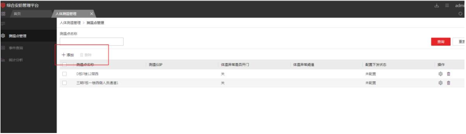 配置接收事件測(cè)溫設(shè)備,配置異常體溫閾值和進(jìn)出控制。
