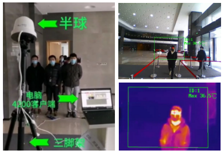 對(duì)于采用以上熱成像測(cè)溫方式,針對(duì)熱成像設(shè)備畫面中出現(xiàn)的人員溫度均可進(jìn)行檢測(cè),僅顯示最高溫,出現(xiàn)異常預(yù)警,從大量人群中快速篩選出異常人員批次。