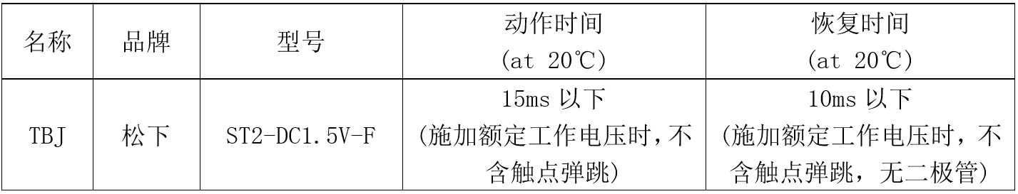 表1 跳閘保持繼電器部分參數(shù)