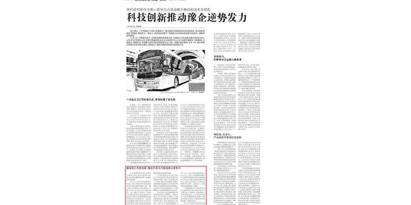 11月3日,《大河報(bào)》以《重金投入科技創(chuàng)新,開足馬力鍛造核心競(jìng)爭(zhēng)力》為題,對(duì)我司全速加碼科技創(chuàng)新、加大研發(fā)投入、建設(shè)完善激勵(lì)體系等方面進(jìn)行了新聞報(bào)道。