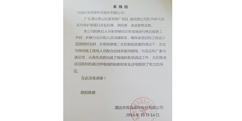 10月14日,廣東清遠(yuǎn)市青山垃圾處理發(fā)電廠10kV變電站成功投運(yùn)送電。許繼智能提供的綜合自動(dòng)化系統(tǒng)在本項(xiàng)目順利投運(yùn),為清遠(yuǎn)市環(huán)保節(jié)能工程以及再生能源利用的發(fā)展起到了強(qiáng)有力的推進(jìn)作用。