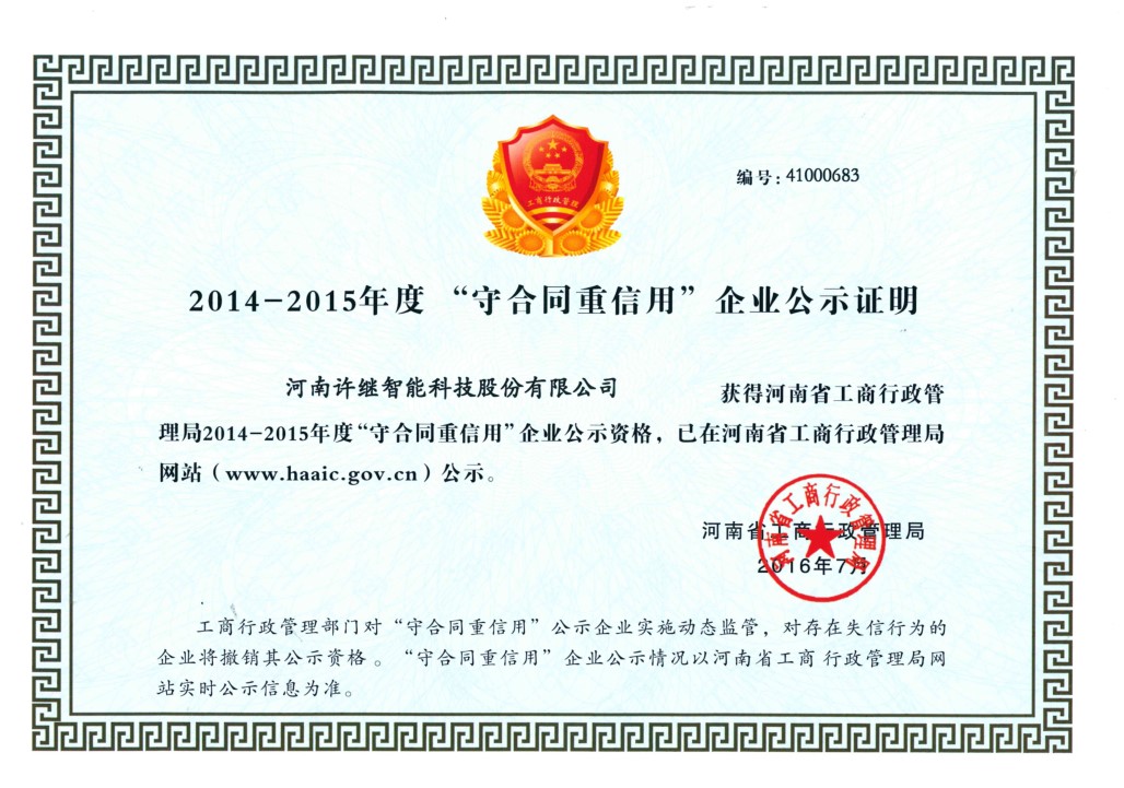 11月29日,許昌市工商局示范區(qū)分局申靜黎局長(zhǎng)一行,到公司授發(fā)“2014-2015年度河南省守合同重信用企業(yè)”公示牌匾,并頒發(fā)公示資格證書。