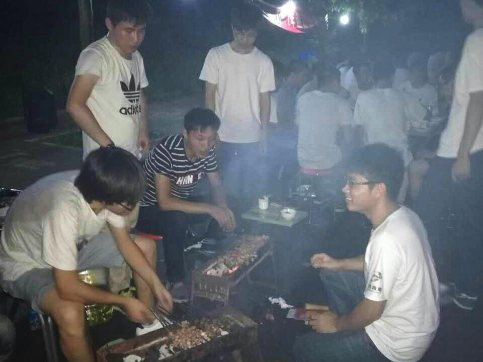 晚上七點(diǎn),公司常務(wù)副總宣布“2017年迎新燒烤晚會”正式開始。新老員工們分工合作,大家一起動手清洗食材、串食材,準(zhǔn)備烤架、炭火及調(diào)料。