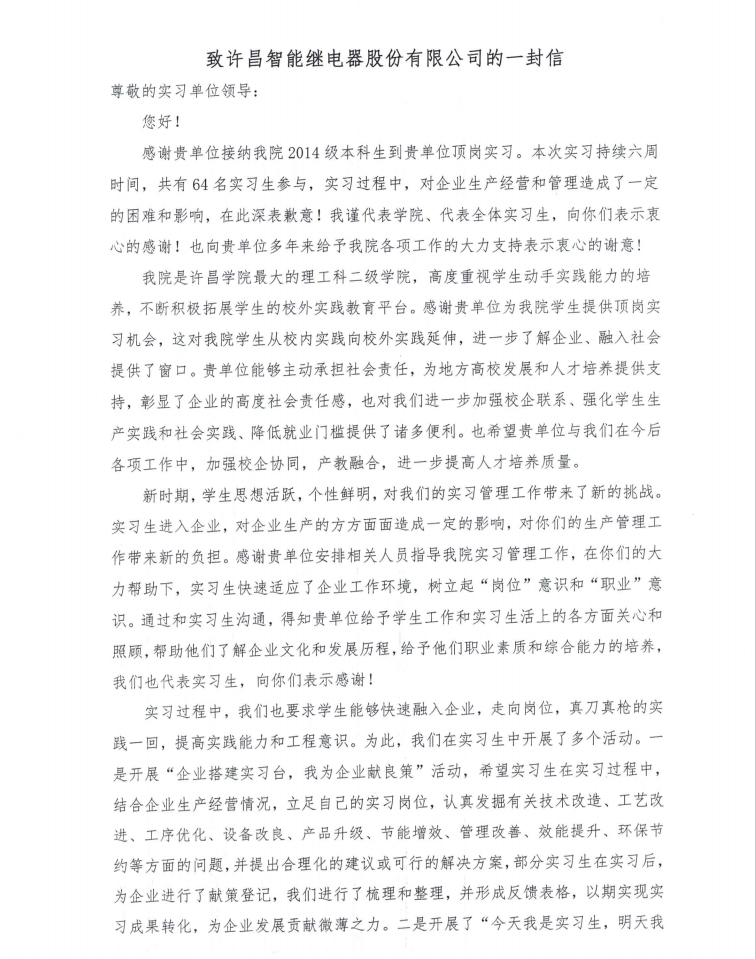 附:許昌學(xué)院給許昌智能的表?yè)P(yáng)信。