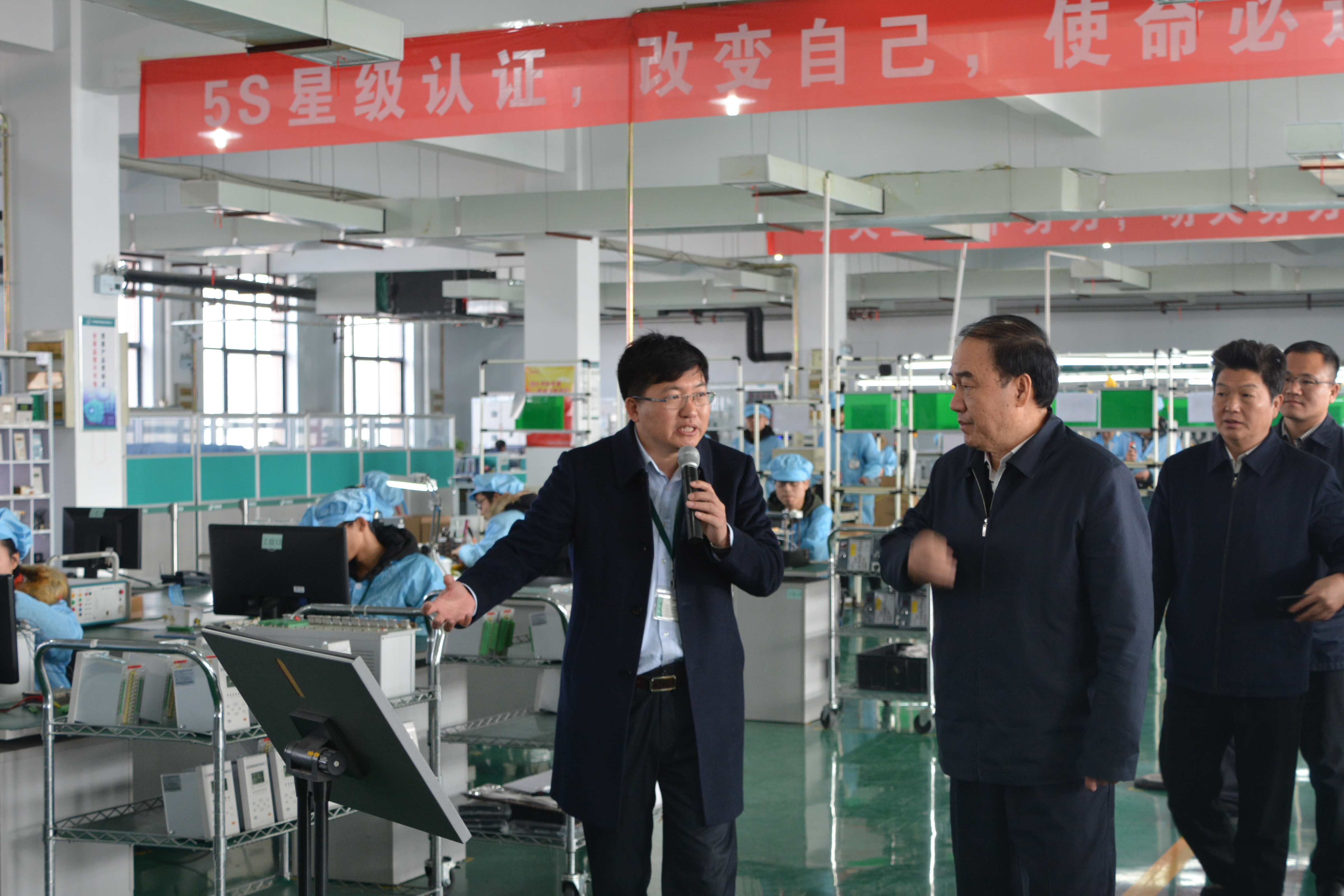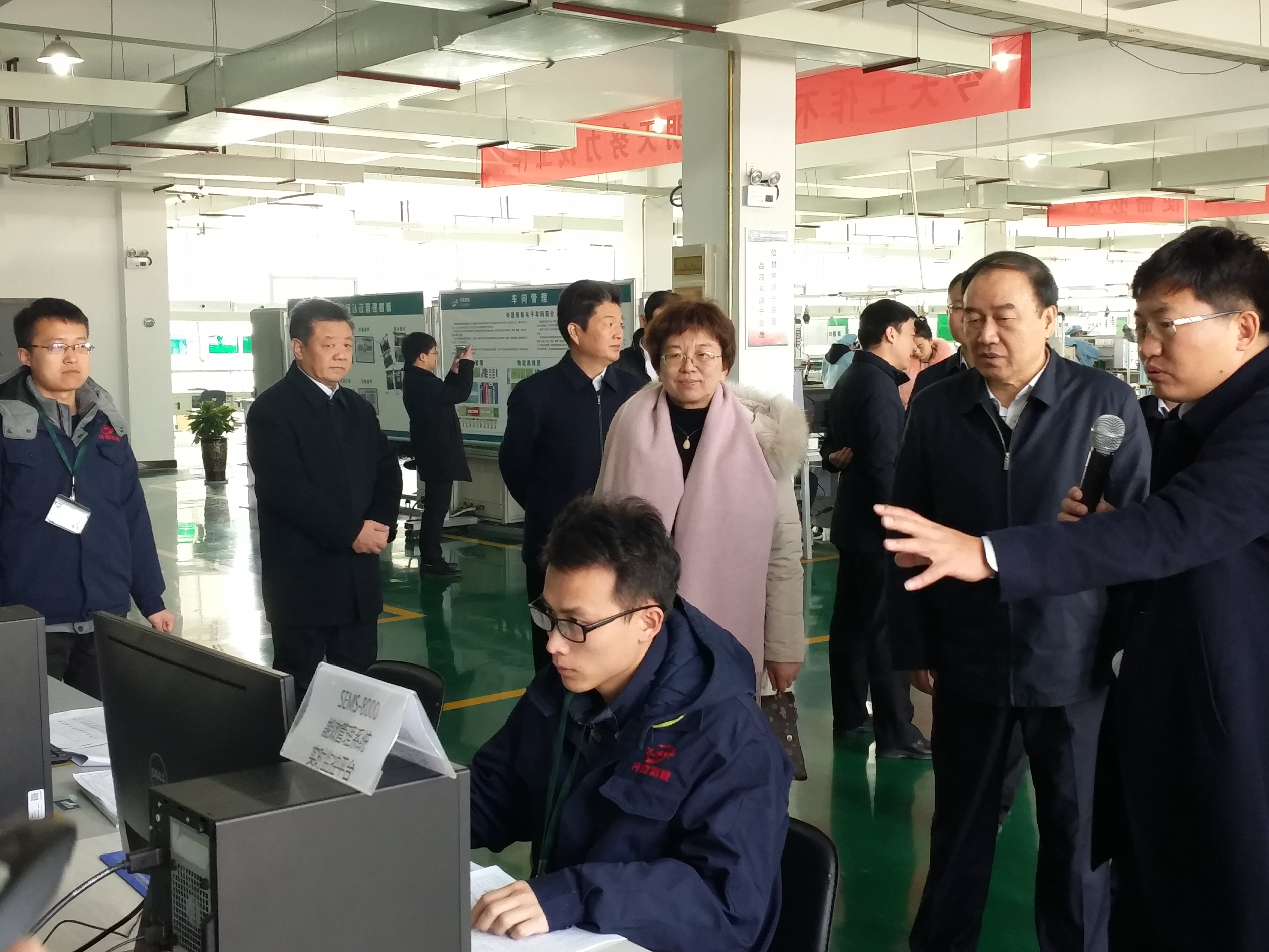 在公司三樓生產(chǎn)車間,董事長就公司重點(diǎn)開發(fā)、推廣的智能變配電系統(tǒng)、牽引供電直流成套開關(guān)及保護(hù)設(shè)備、能效管理系統(tǒng)、電氣火災(zāi)監(jiān)控系統(tǒng)等產(chǎn)品進(jìn)行了現(xiàn)場講解。同時(shí)就公司在單元生產(chǎn)線、工藝操作流程改善等方面進(jìn)行了詳細(xì)的匯報(bào)。