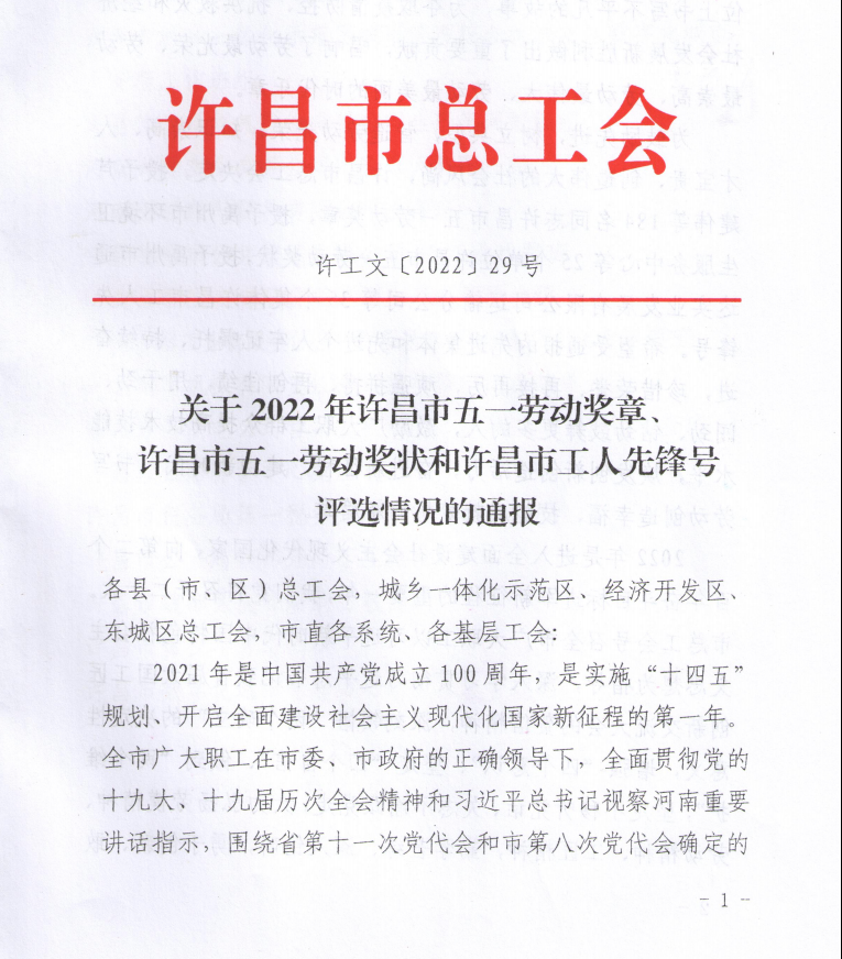 近日,許昌市總工會印發(fā)了《關(guān)于2022年許昌市五一勞動獎?wù)?、許昌市五一勞動獎狀和許昌市工人先鋒號評選情況的通報》(許工發(fā)〔2022〕29號),我司技術(shù)中心張洋豪被授予“許昌市五一勞動獎?wù)隆薄! ∽?014年入職以來,張洋豪先后從事中試測試、產(chǎn)品研發(fā)工作。通過不斷學(xué)習(xí)歷練,刻苦鉆研技術(shù),不斷提高業(yè)務(wù)能力,產(chǎn)品開發(fā)…